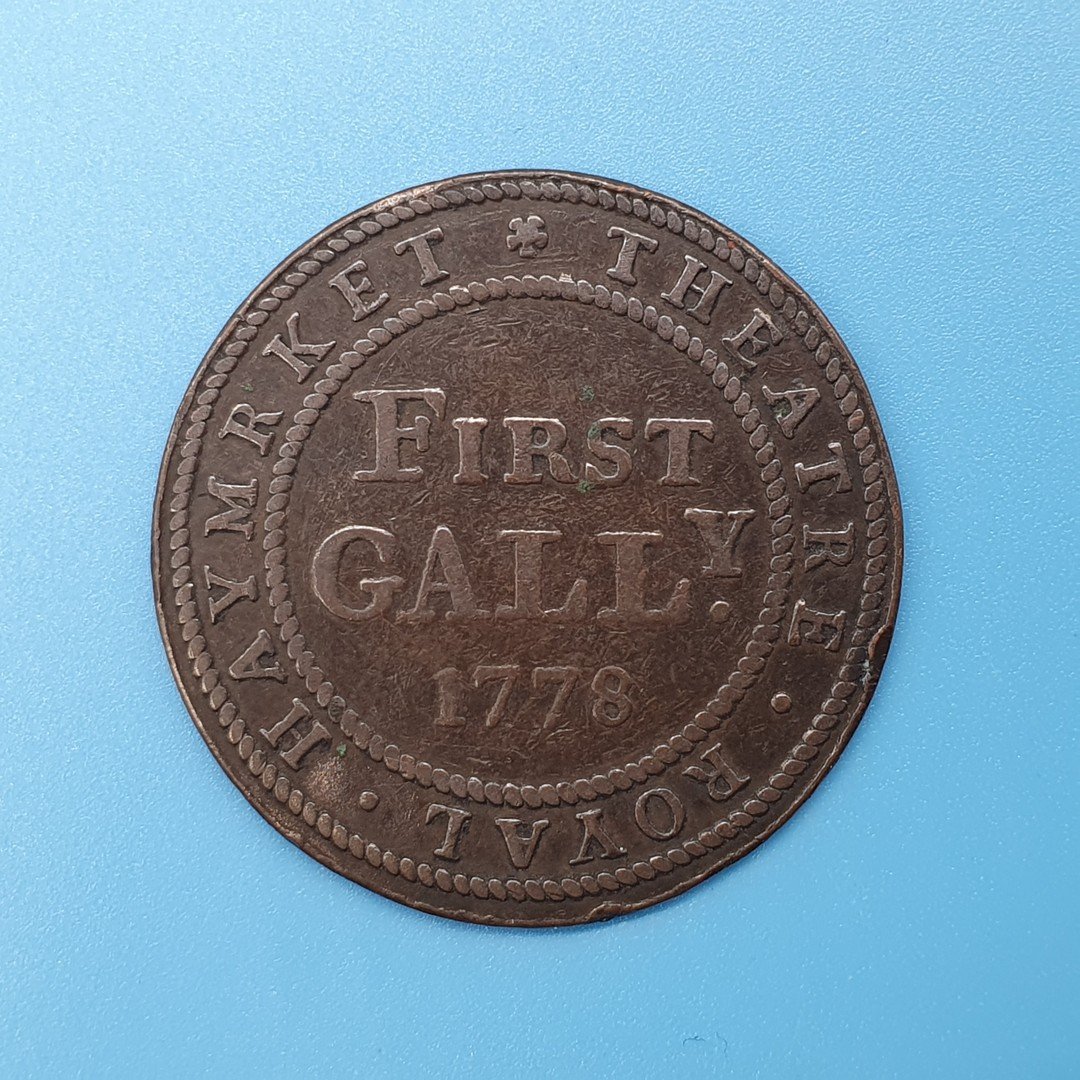 Obv. THEATRE ROYAL HAYMARKET FIRST GALLY 1778