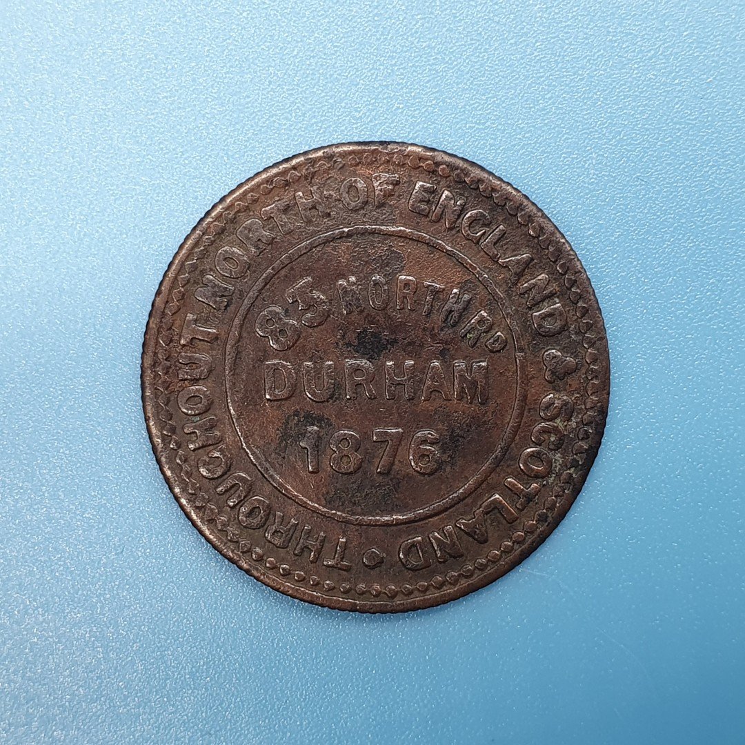 Obv. ·THROUGHOUT NORTH OF ENGLAND & SCOTLAND - 83 NORTH ROAD - DURHAM - 1876